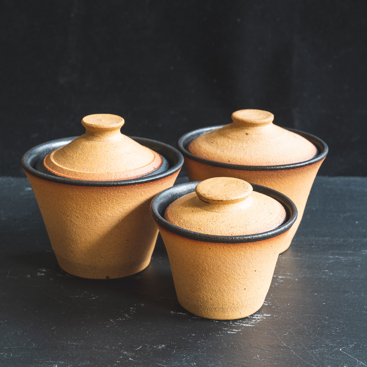 Sandstone buff body, matte black interior